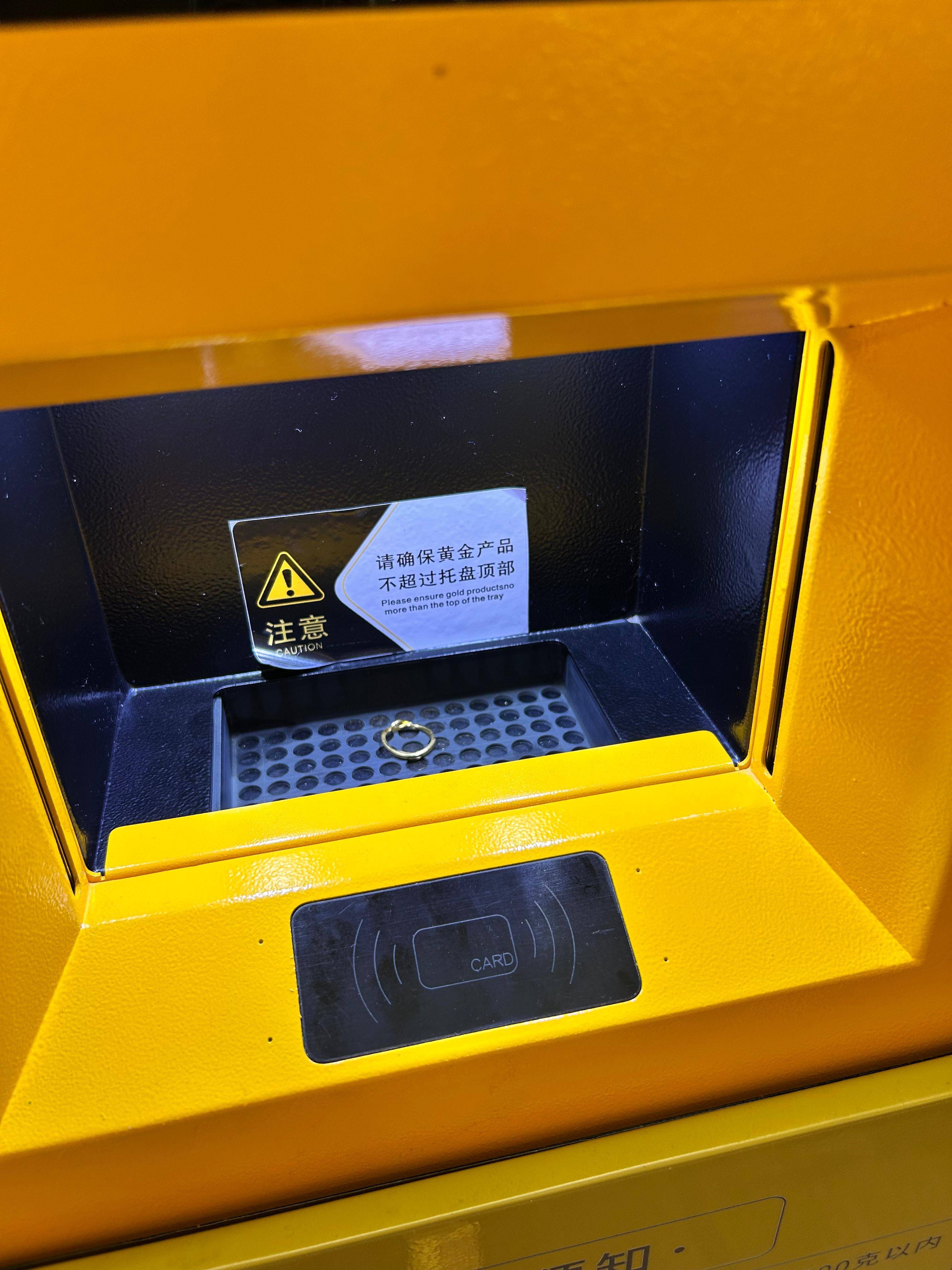 记者现场体验了黄金回收流程。按照操作指引,可以在1分钟内实现自助下单。随即将黄金产品放入闸口,平放于托盘上,机器3分钟完成自动检测,并给出样品克重、含金量等数据,结合金价给出预估样品价值,以及扣除服务费的预估回购金额等信息。确认回收后,最快30分钟左右,即可收到打款。据店家工作人员介绍,“智慧金店”回收克重精准度可以达到0.01克,设备对接上海黄金交易所实时金价,承诺通过GA38-2021认证,定期接受市场监管校准,并与多家银行达成合作。